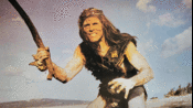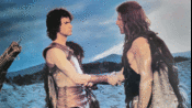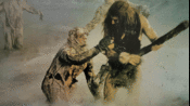 Hero Mazx (GEORGE RIVERO) battles with the leader of the warriors sent forth to kill him, by the Evil Ocron, Goddess of the underworld. |
