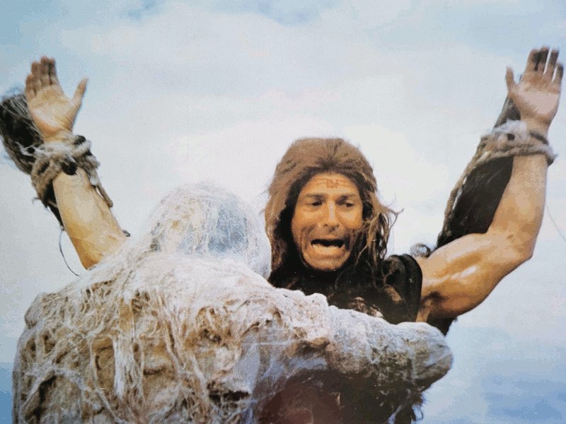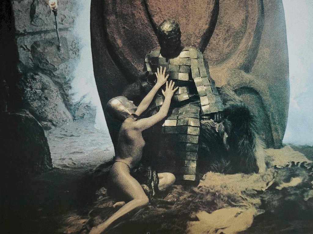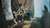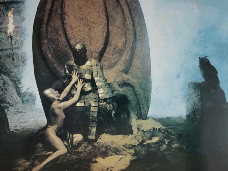 A cave dweller keeps watch for the hero Mazx as he is on his journey to the mountain of Ocron, Goddess of the underworld. |