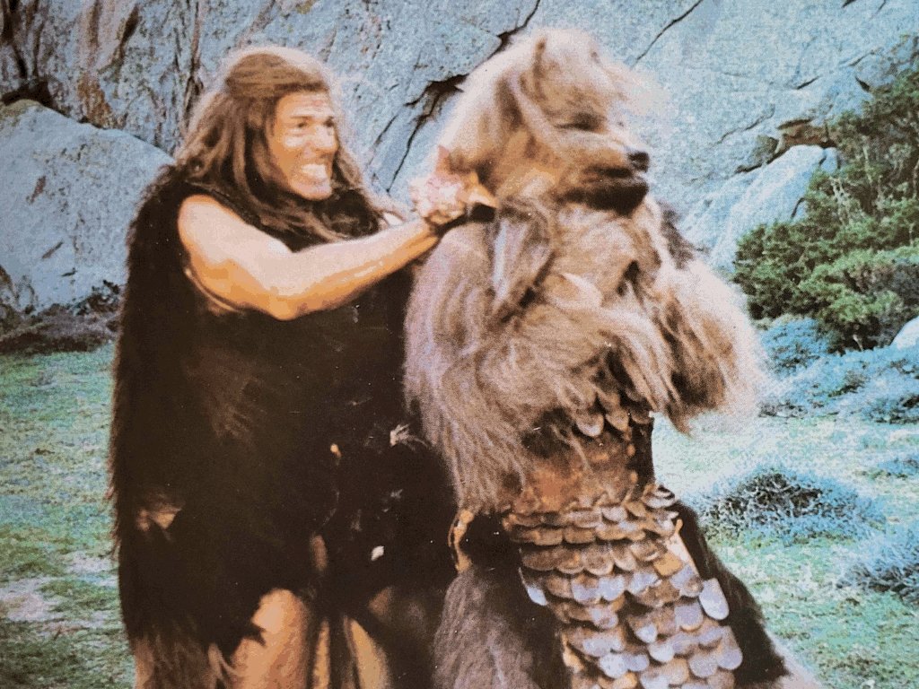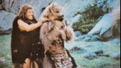 Hero Mazx (GEORGE RIVERO) captured by cave dwellers is casted from the mountain of Ocron, Goddess of the Underworld, to the icy waters below. |