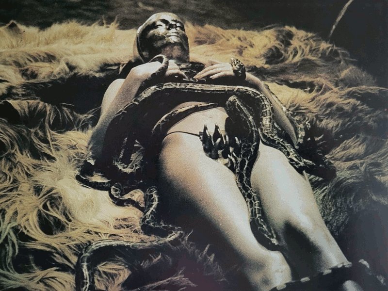 Evil Goddess Ocron (SABRINA SIANI) seeks protection from her enemies, with the underworld Warlord Zora (CONRADO SAN MARTIN). |