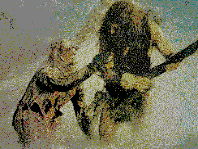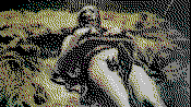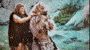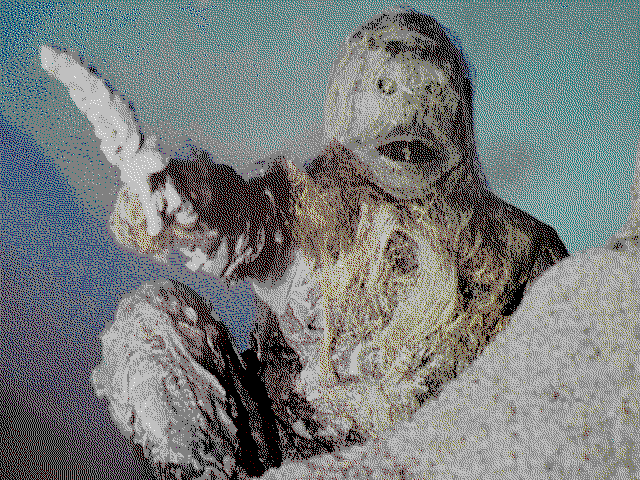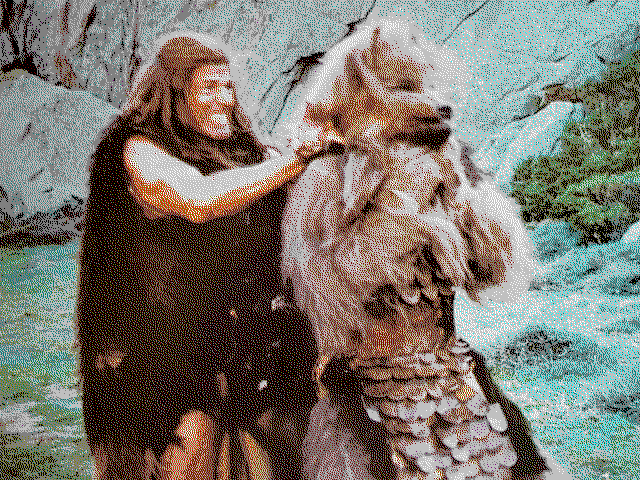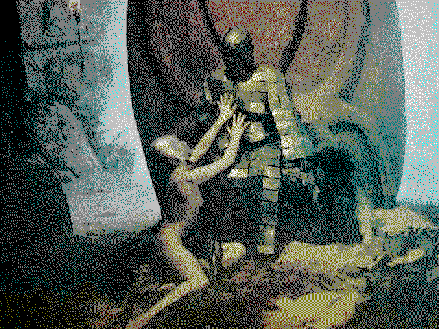 A cave dweller keeps watch for the hero Mazx as he is on his journey to the mountain of Ocron, Goddess of the underworld. |