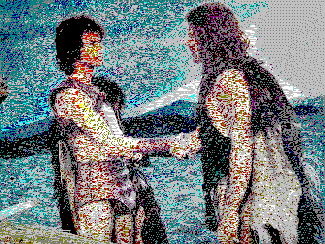 Evil Goddess Ocron (SABRINA SIANI) seeks protection from her enemies, with the underworld Warlord Zora (CONRADO SAN MARTIN). |