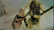 Hero Mazx (GEORGE RIVERO) battles with the leader of the warriors sent forth to kill him, by the Evil Ocron, Goddess of the underworld. |